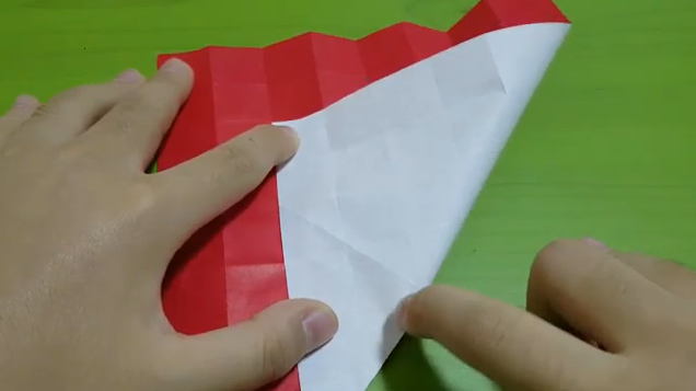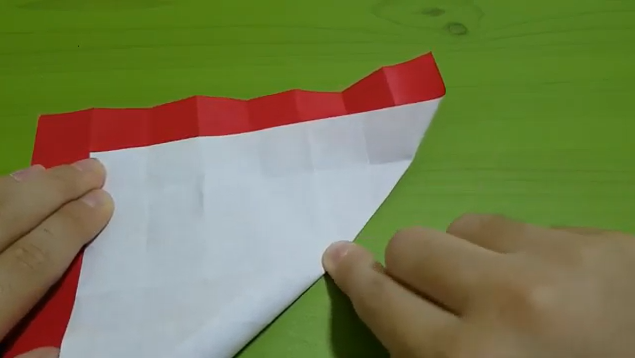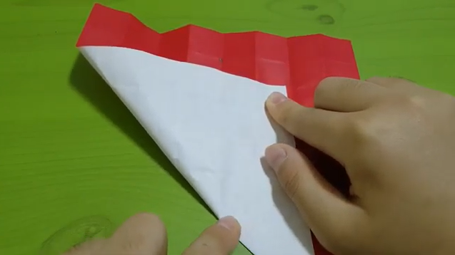 위쪽에 다이아몬드모양 점이 연결되도록 끝에 한칸씩 남기고 접습니다.