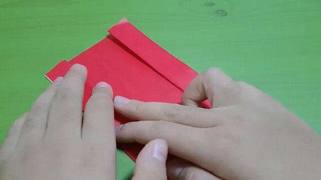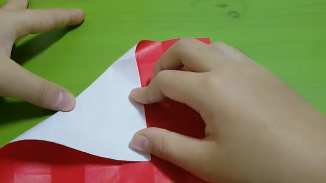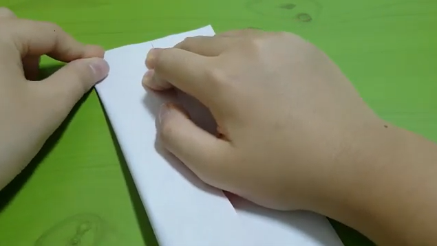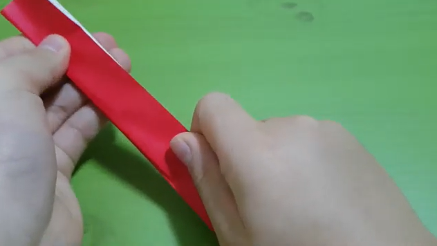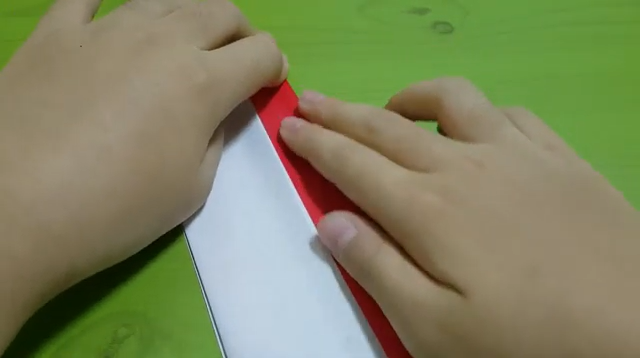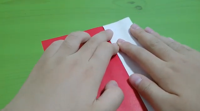 색종이를 반으로 접습니다. 원하는 색이 안쪽으로 들어가게 합니다.